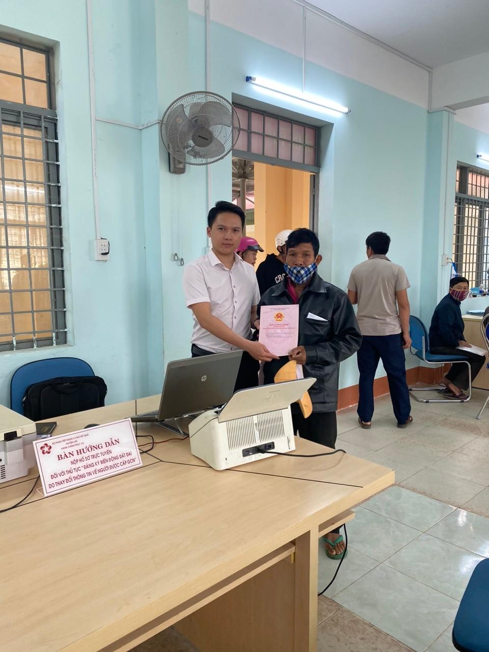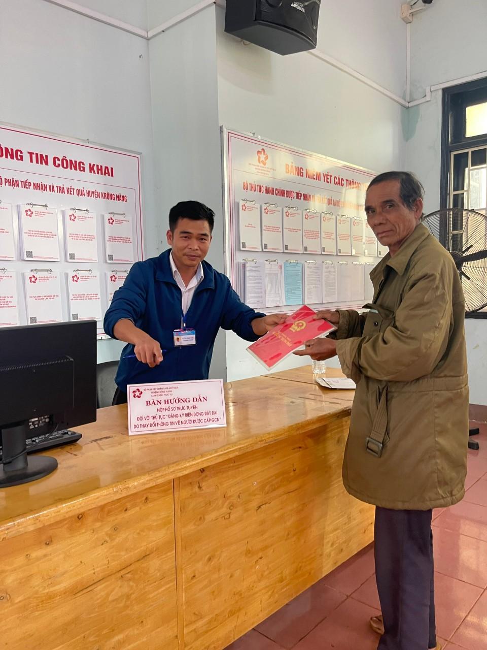 Trường hợp của chị N.T.T.H thường trú tại tỉnh Bình Dương, có quyền sử dụng đất tại huyện Ea H’leo, tỉnh Đắk Lắk, do thay đổi địa chỉ thường trú nên Chị thực hiện thủ tục thay đổi thông tin về người được cấp Giấy chứng nhận (thay đổi địa chỉ thường trú trên Giấy chứng nhận quyền sử dụng đất từ thị xã Bến Cát sang huyện Bàu Bàng, tỉnh Bình Dương). Được sự hướng dẫn nhiệt tình của Tổ Công nghệ số hỗ trợ cộng đồng của Văn phòng Đăng ký đất đai tỉnh Đắk Lắk, Chị rất vui và tâm đắc vì chỉ trong thời gian ngắn, Chị đã thực hiện xong việc nộp hồ sơ trực tuyến mà không phải bấm số thứ tự và đợi đến lượt nộp hồ sơ. Chị cho biết, lần sau đối với các thủ tục thay đổi thông tin về người sử dụng đất, Chị sẽ nộp trực tuyến và không phải cất công từ tỉnh Bình Dương đến huyện Ea H’leo, tỉnh Đắk Lắk để nộp hồ sơ trực tiếp nữa.