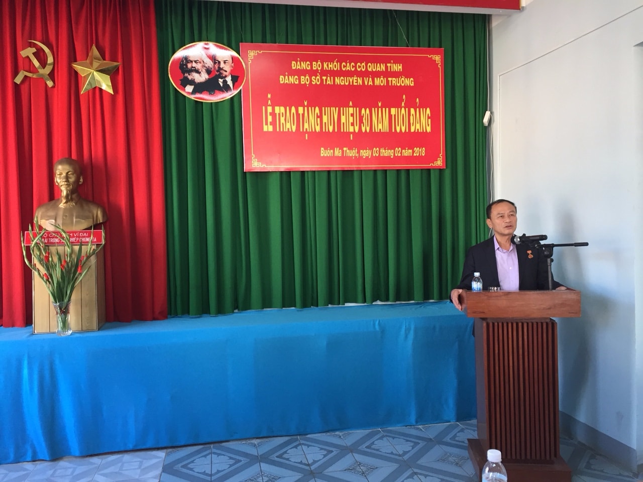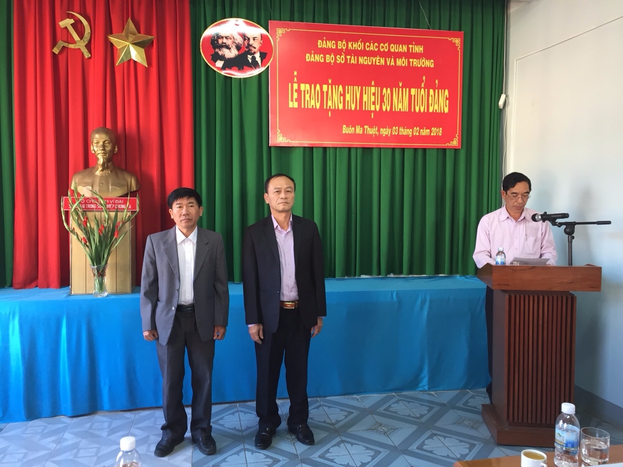 Ngày 05/02/2018, tại hội trường Sở Tài nguyên và Môi trường, Đảng ủy Sở Tài nguyên và Môi trường đã long trọng tổ chức Lễ trao tặng Huy hiệu 30 năm tuổi Đảng cho đồng chí Bùi Thanh Lam, Bí thư Đảng ủy, Giám đốc Sở Tài nguyên và Môi trường và đồng chí Nguyễn Gia Hồng, Trưởng phòng Hành chính – Tổng hợp, Trung tâm Phát triển quỹ đất tỉnh.