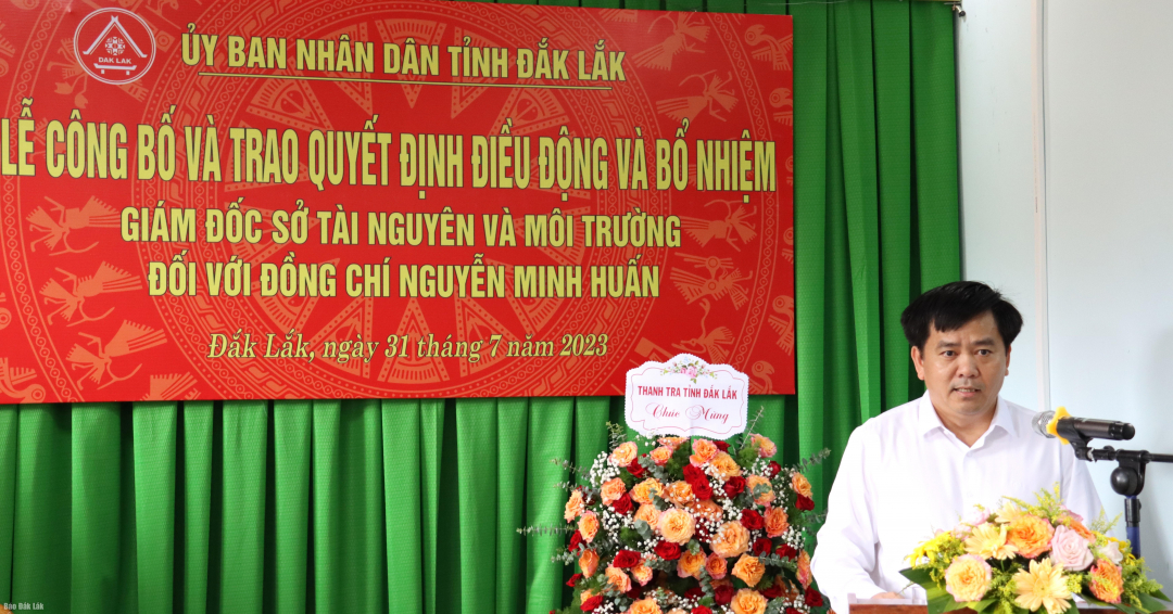 Tại buổi lễ, lãnh đạo Sở Nội vụ đã thông qua Quyết định của UBND tỉnh về công tác cán bộ. Cụ thể: điều động và bổ nhiệm ông Nguyễn Minh Huấn, Tỉnh ủy viên, Chánh Thanh tra tỉnh giữ chức vụ Giám đốc Sở Tài nguyên và Môi trường, thời hạn giữ chức vụ là 5 năm, kể từ ngày 1/8/2023.