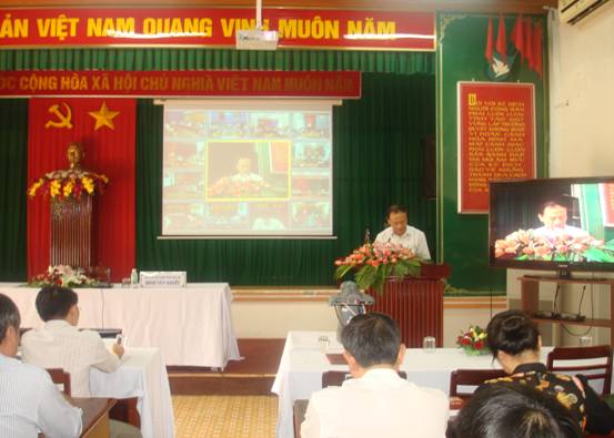 Quang cảnh Hội nghị trực tuyến tại Đầu cầu Hội trường