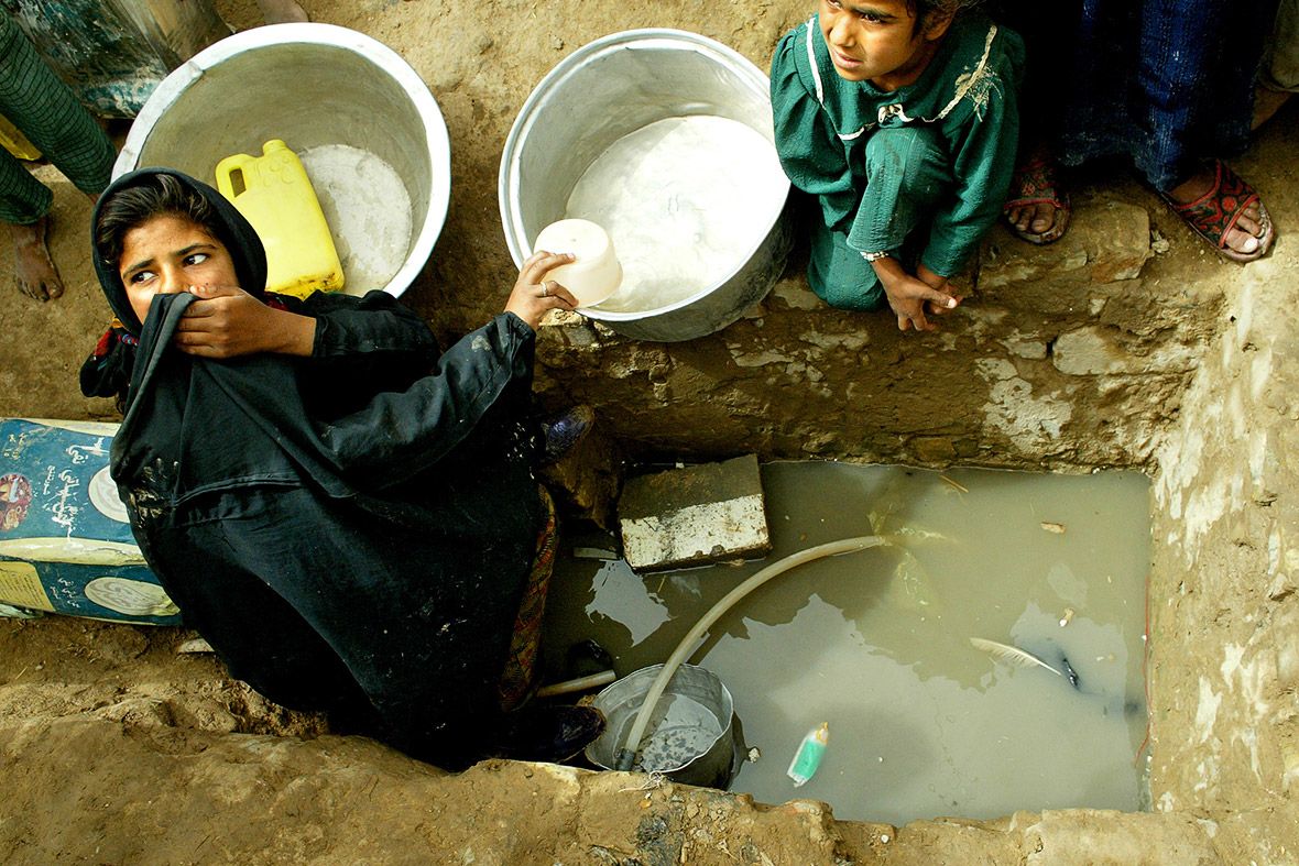 Một thiếu nữ lấy nước từ một cái hố ở Tariq, một quận của Saddam, thành phố bên cạnh Baghdad - Ảnh: Reuters