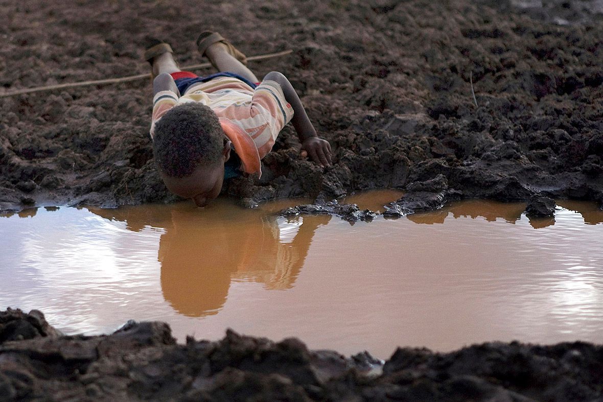 Cậu bé uống nước trong ao làng Bule Duba (Ethiopia) - Ảnh: Reuters