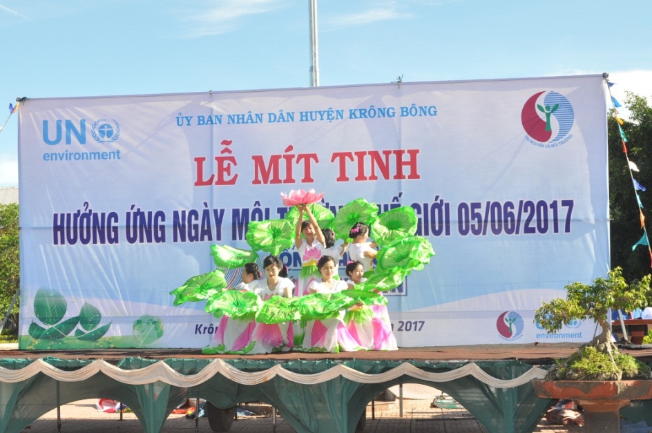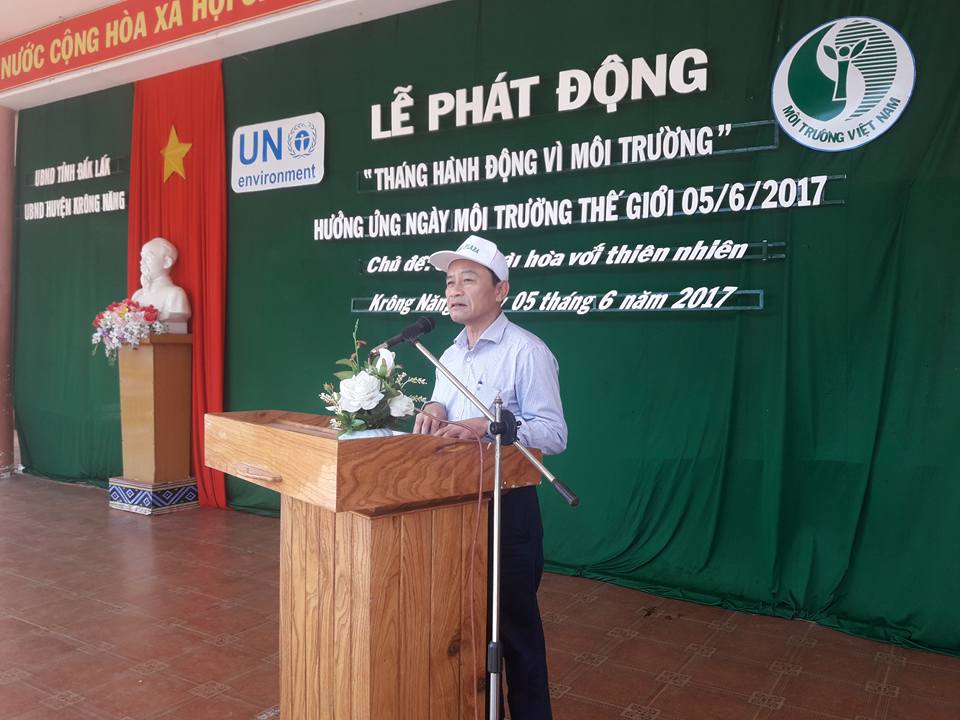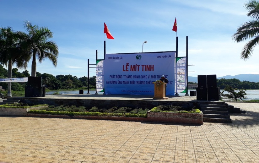 Sáng ngày 05/6/2017, Sở Tài nguyên và Môi trường đã phối hợp với UBND huyện Lắk và huyện Krông Năng tổ chức lễ mít tinh Phát động “Tháng hành động vì môi trường” hưởng ứng Ngày Môi trường thế giới năm 2017. Đến dự có các đồng chí Lãnh đạo của Sở Tài nguyên và Môi trường, Chi cục Bảo vệ môi trường; đại diện một số Sở, ban, ngành, đoàn thể của tỉnh; các huyện, thành phố và hơn 500 đại biểu thuộc huyện Lắk và 700 đại biểu thuộc huyện Krông Năng.