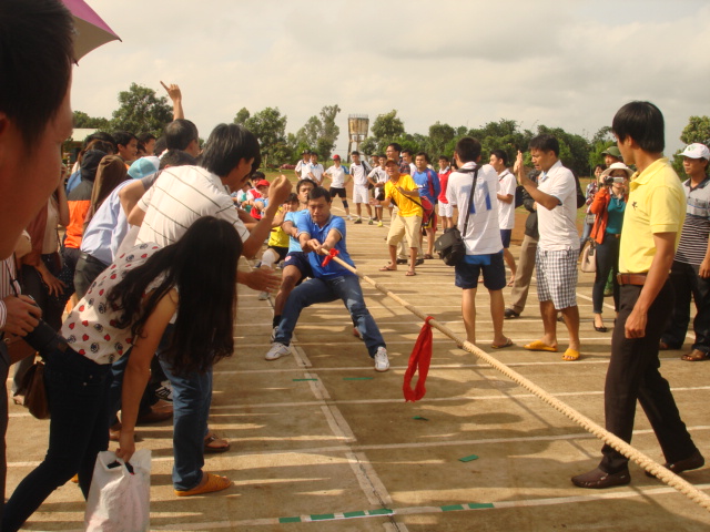 Đội kéo co Đắk Lắk đang ra sức thi đấu với sự cổ vũ nhiệt tình của khán giả