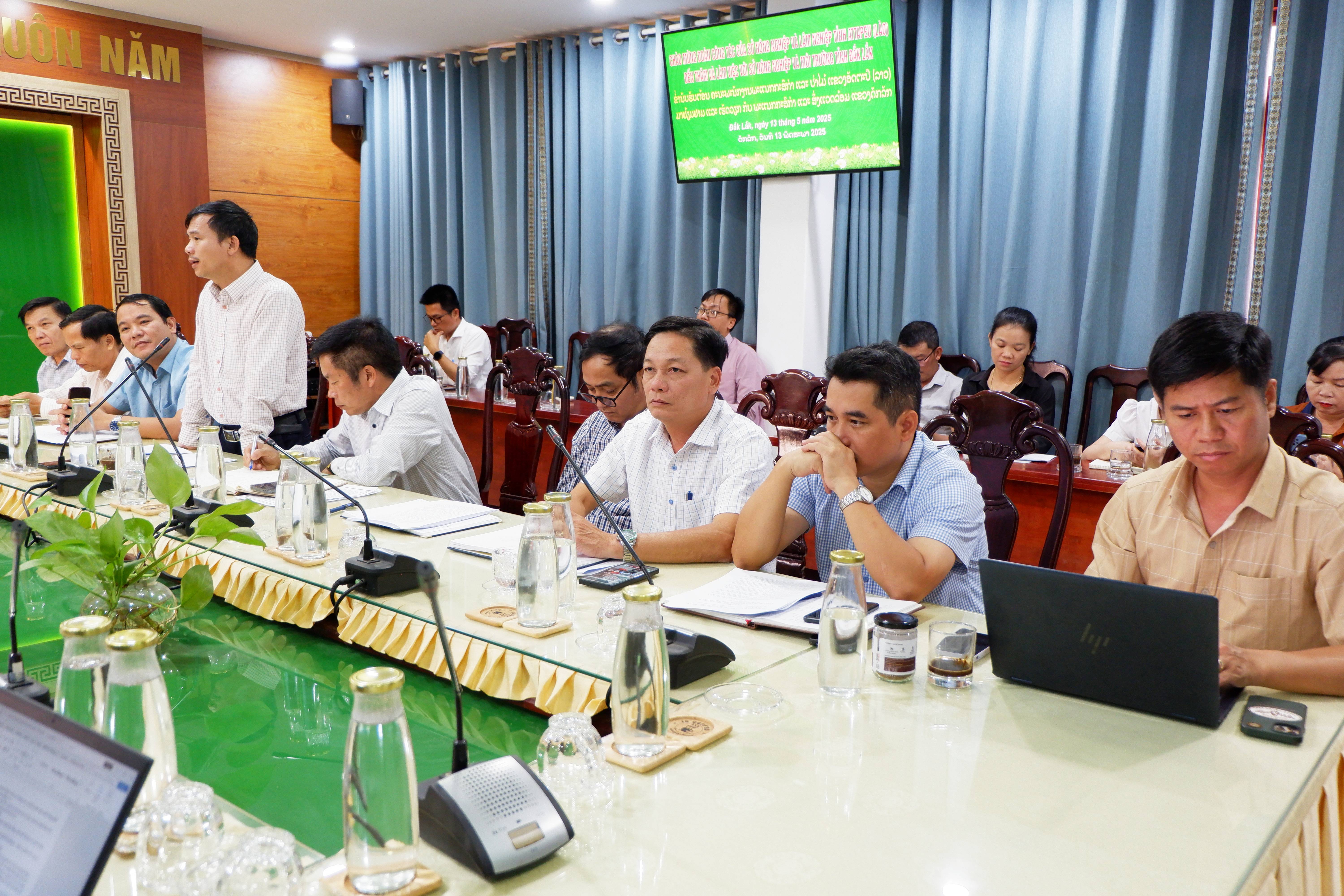 Chiều 13/5, Đoàn công tác của Sở Nông nghiệp và Lâm nghiệp tỉnh Attapeu (Cộng hòa Dân chủ Nhân dân Lào) do Bà Vông Đươn - Phong Sa Mút, Phó Giám đốc Sở Nông nghiệp và Lâm nghiệp làm Trưởng đoàn đến thăm và làm việc với Sở Nông nghiệp và Môi trường tỉnh Đắk Lắk.