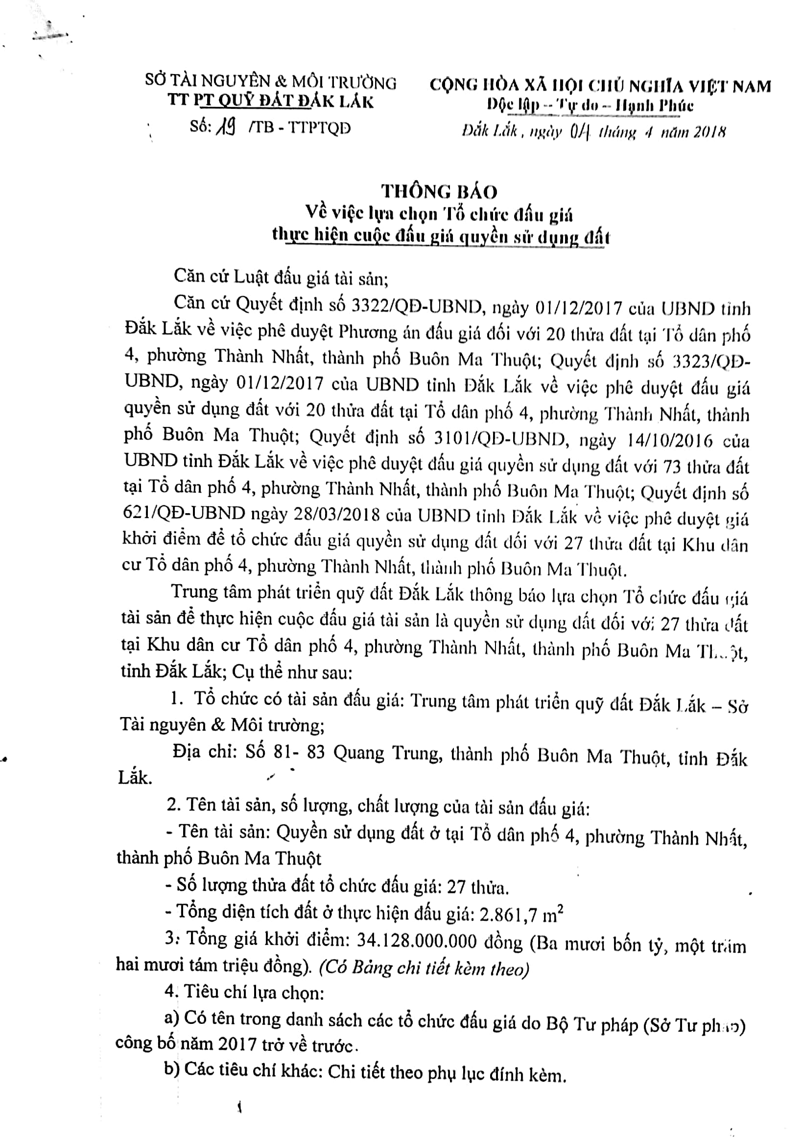 Thông báo số 19/TB-TTPTQĐ ngày 04/4/2018: Xem chi tiết