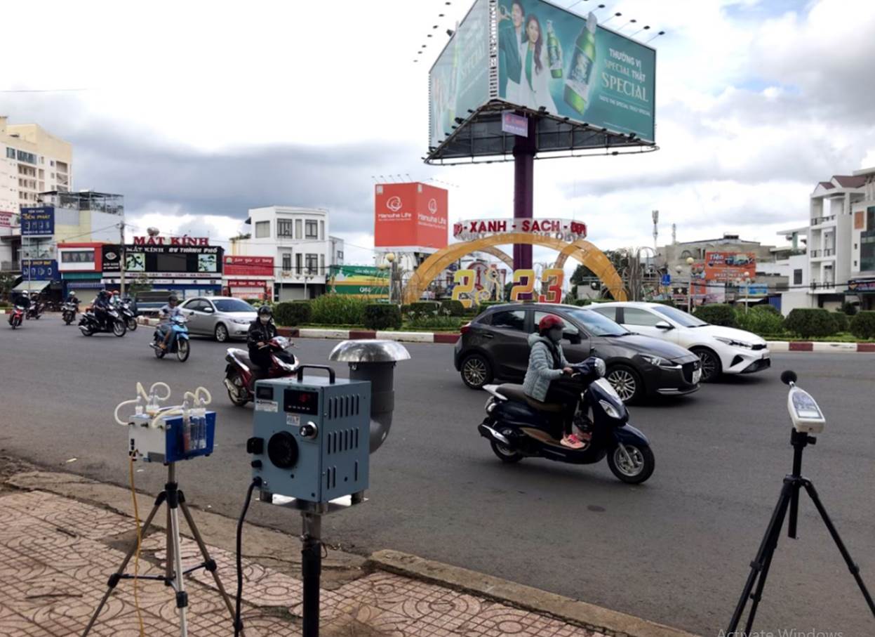 Hình ảnh quan trắc không khí tại khu vực Bùng binh Km3 Tp. BMT